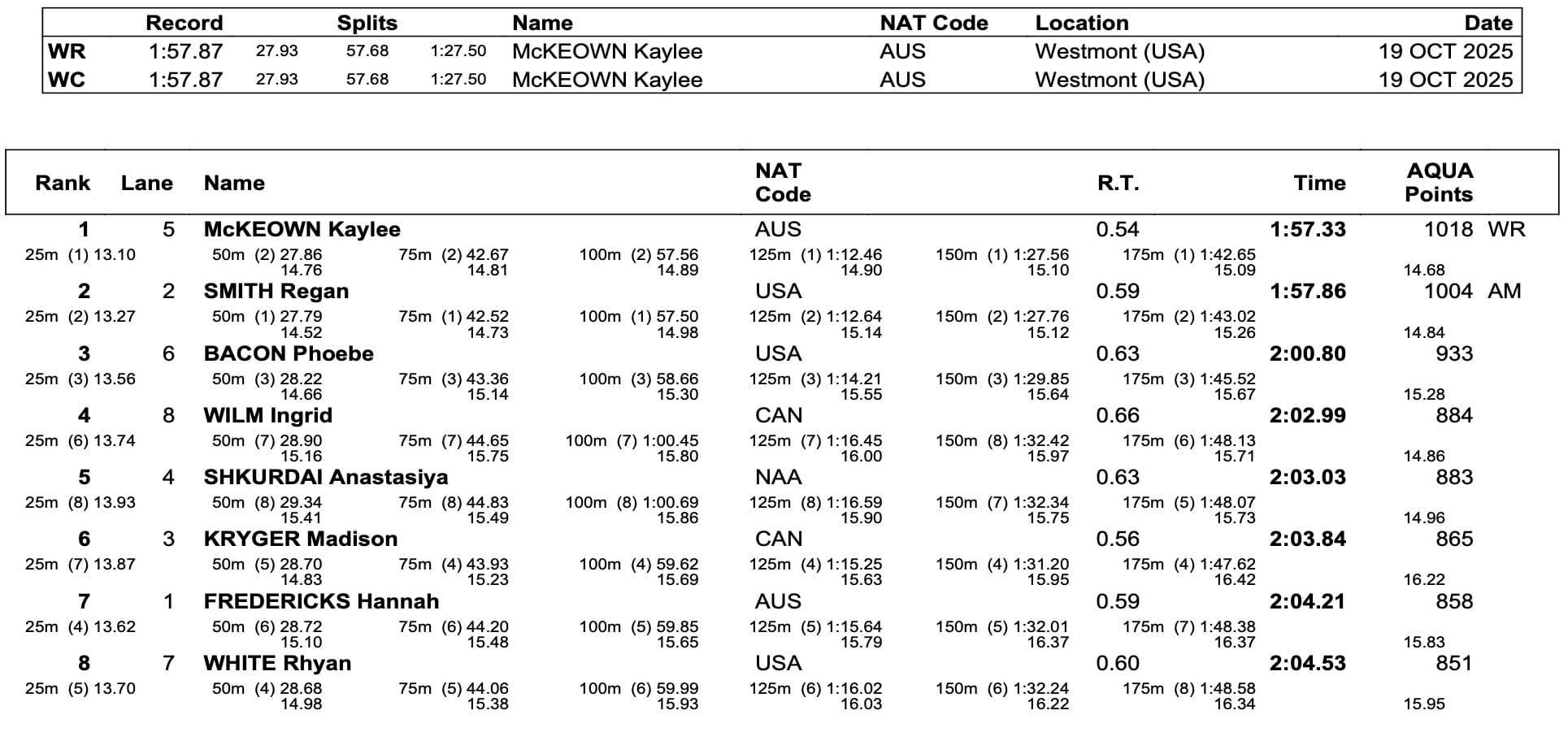 1. Kaylee McKeown 🇦🇺 1:57.33 WR