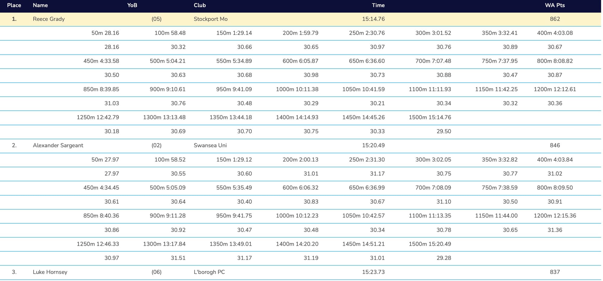 Men's 1500m freestyle - Reece Grady Keeps The Crown