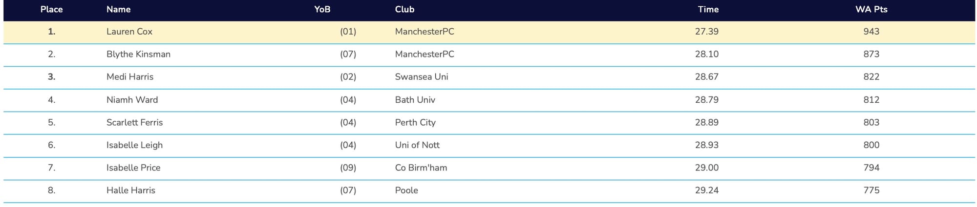 At 27.39, Lauren Cox rattled the national record and fell just a surge shy of European-record pace (27.1) for a commanding victory in a dash event heading towards its Olympic debut at LA2028.