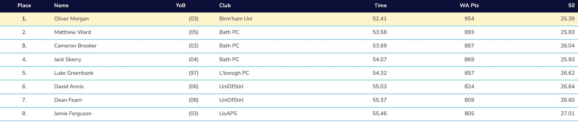 Oliver Morgan now has four sub-52.5s and 16 sub-53s 100 backstrokes to his name. They keep piling up, and the man is hungry for that sub-52 inside his British record of 52.12. It'll come.