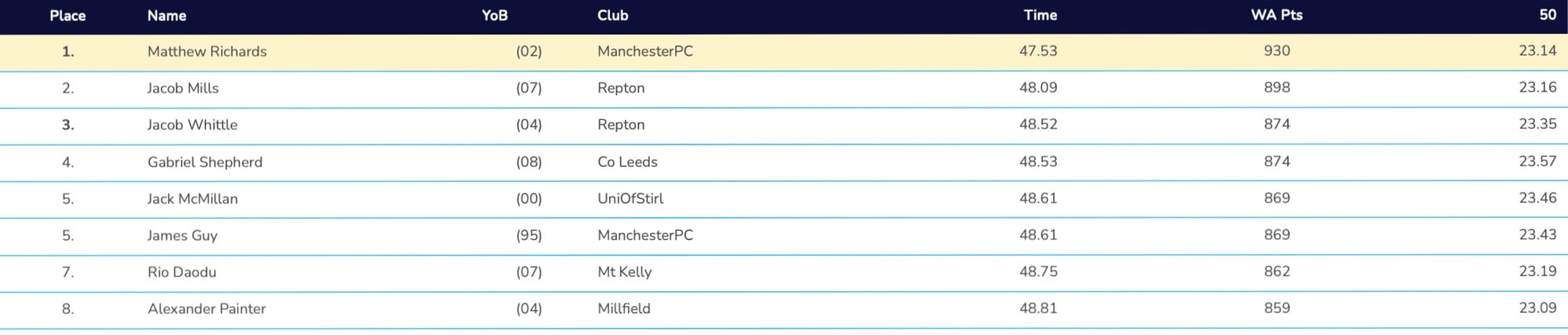 The test of future passed, the test of present was closer to a nailed mission for Richards than Mills, the gap between them 47.53 to 48.09 in the final. The second Jacob in the spill, Jacob Whittle, and Gabriel Shepherd, who won't leave his teens behind until the year of the LA Games, completed the top four and punched tickets to the European Championships.