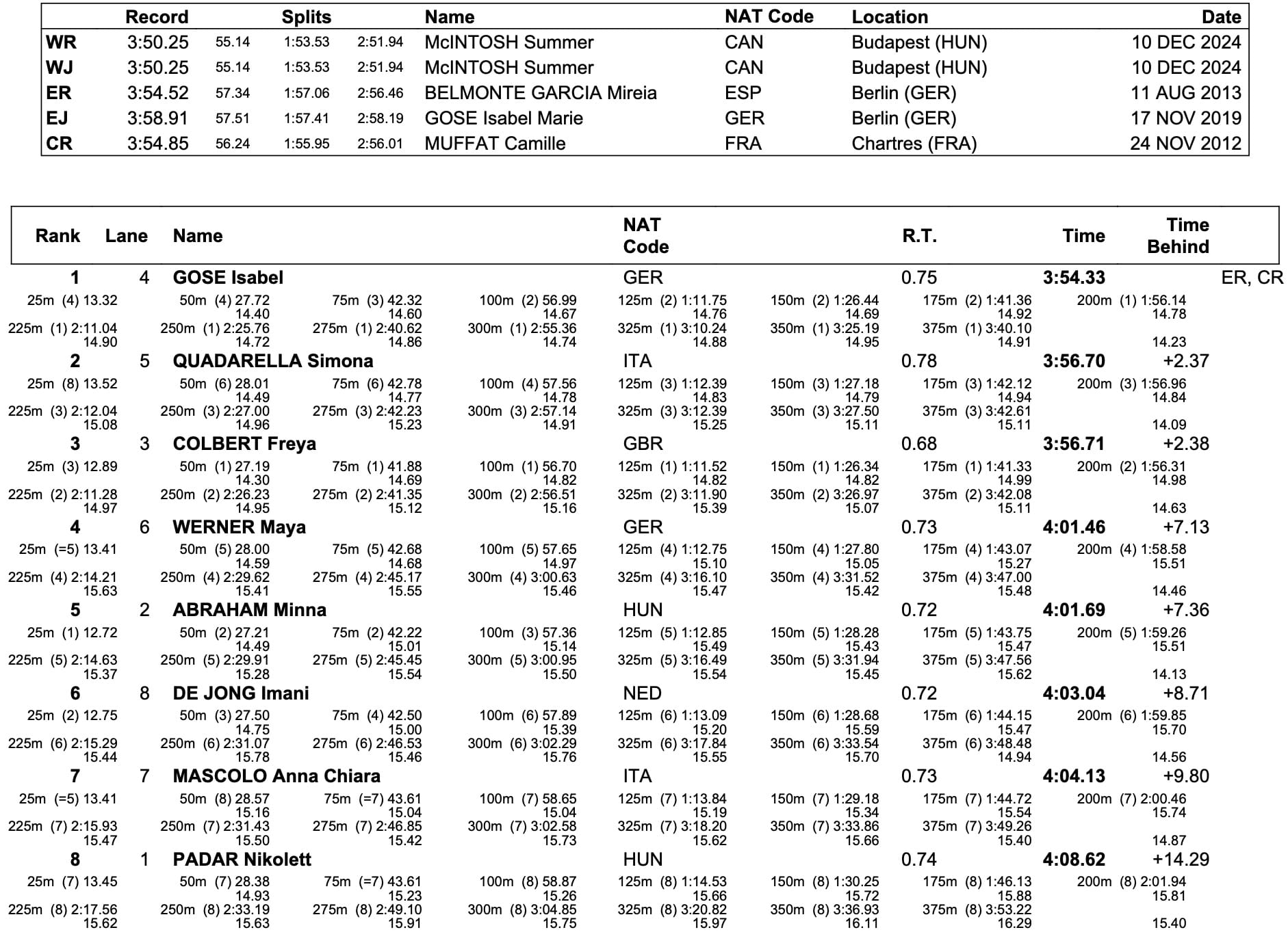Gold In 3:54 Gets Gose Past Belmonte's 12-Year-Old Record But Magdeburg Mate Märtens Is Pipped By Britain's McMillan