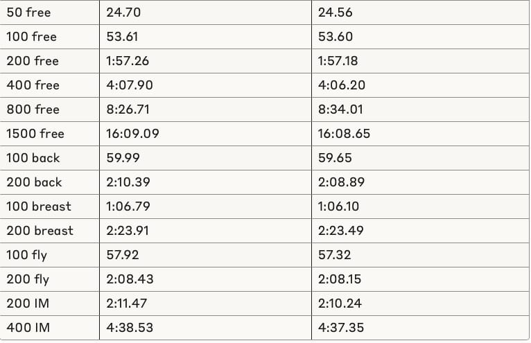 Good move: that reflects, as Unger noted, the career or season best of a swimmer beyond the best they had on the day and in the circumstances in Paris.