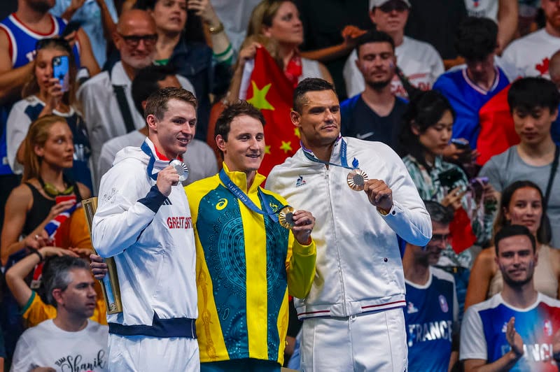 Australia had never had a gold in the dash, Britain had never had a medal of any colour. And in all that history, in all of that history, no sprinter tops the record set today by Manaudou: gold in 2012, silver in 2016 and 2021 - and now, as an outside smoker in lane 1, bronze to complete the set.