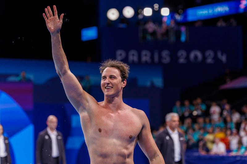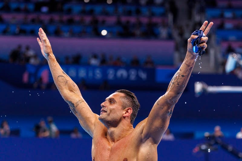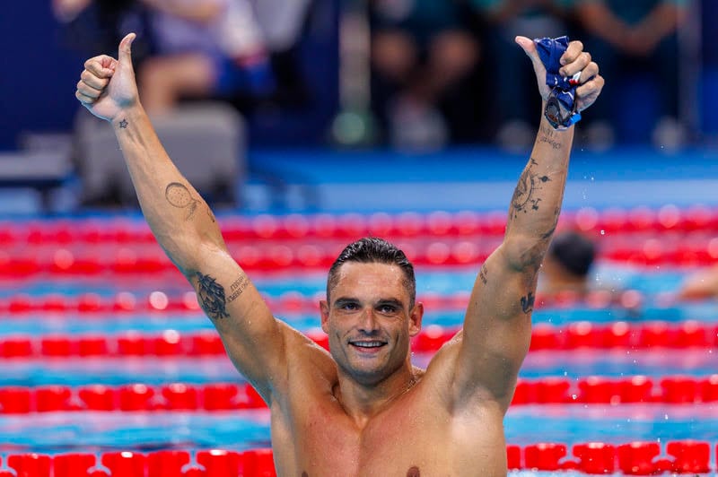 And he did so in front of the French President Emmanuel Macron, who'd come to see how Manaudou would fire for France on a night where Léon Marchand rocketed to god-like status in the pantheon of French sports with a fourth gold in six days at the Paris La Defence Arena.