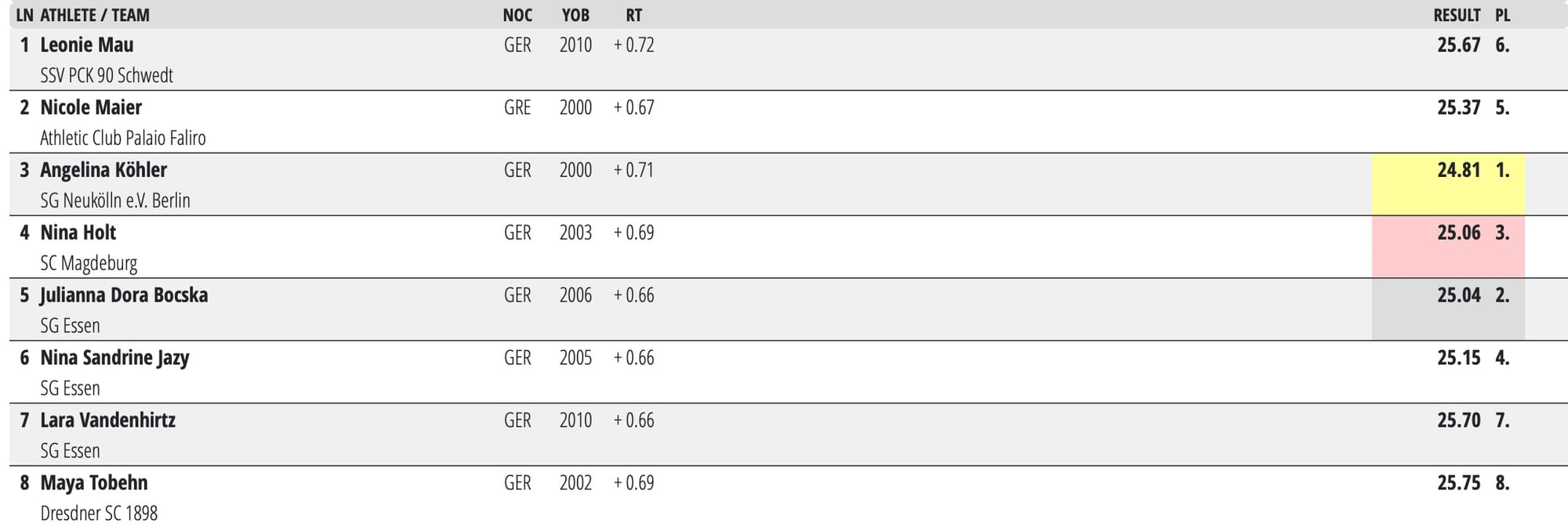 Meanwhile, Germany's 100m 'fly final for women in Berlin today: