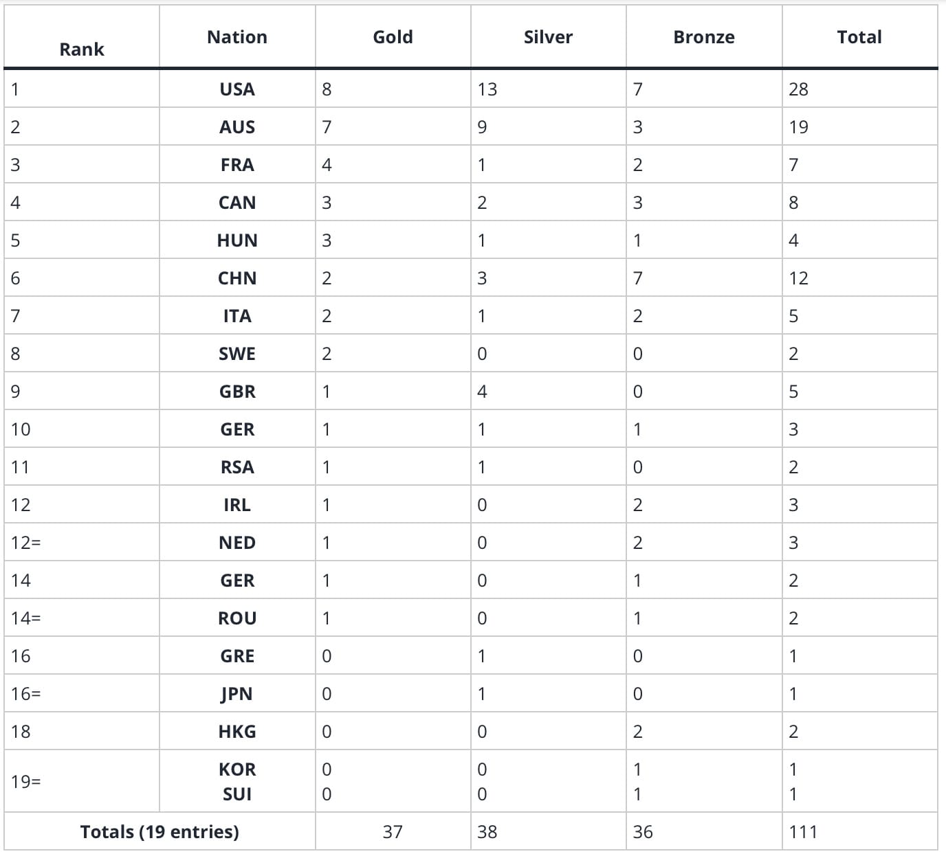 Medals Table: USA Pip AUS 8 Golds To 7 In Tightest Call For Decades
