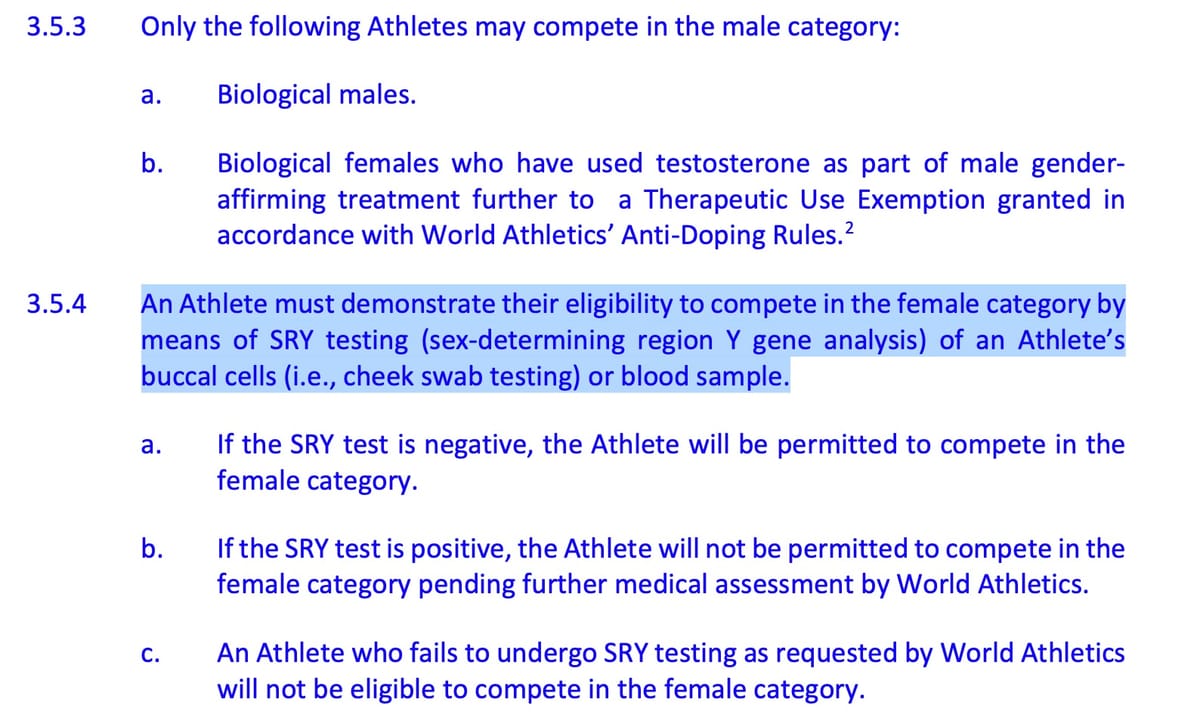 Ultimately, the IOC guidelines were not followed by global regulators for Aquatics, Athletics, Rugby and more recently a few others among world governing bodies left to decide on their own rules. Most placed - and continue to place - their loyalty to the IOC over their obligations for fair play for female athletes.