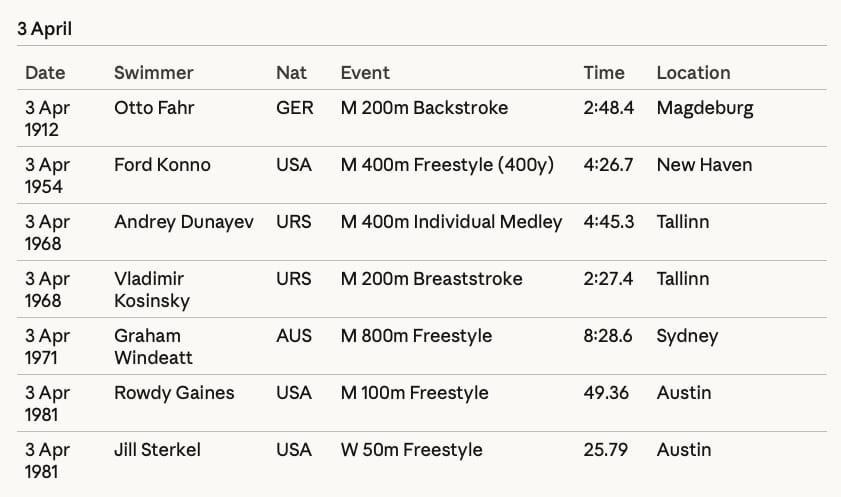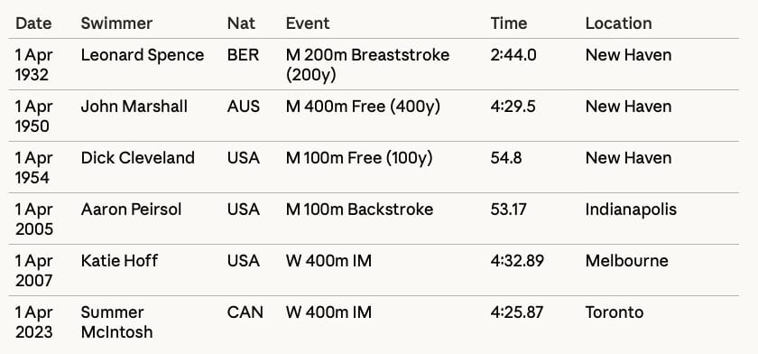 On this day, April 2, in history, the following swimmers set world records: