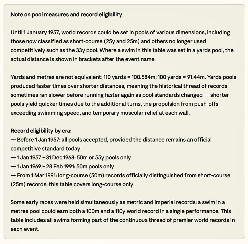 Timeline - The SOS Daily Trawl of official World long-course records (plus all pre 1954 standards, all pools and metrics) set this day throughout history.
