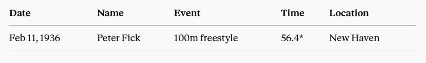 On this day, American Peter Fick set the third and last of his 100m freestyle records in the pool at Yale University, at 56.4: