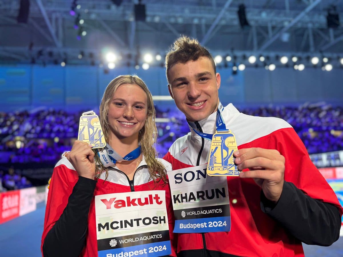 There were plenty of honours for McIntosh's teammates too, in Paris - where the Canadians finished fourth on he swimming medals table behind the two giants battle for supremacy one gold apart, the USA and Australia, and hosts France, boosted by the four-golds glow of Léon Marchand - and in Budapest, where Mary-Sophie Harvey was awarded Female Breakout Athlete of the Year before adding silver in he 200m free to her tally of a 4x100m freestyle silver and three bronze medals, in the 400m free and two mixed relays.