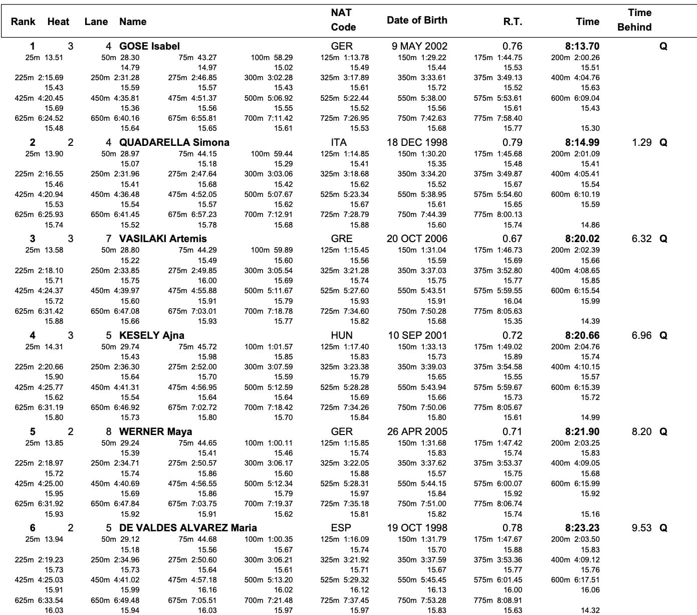 Gose swam in the last line-up his morning knowing that Italian Simona Quadarella, silver medallist in the 400m, had set the lead pace through to the final at 8:14.99.