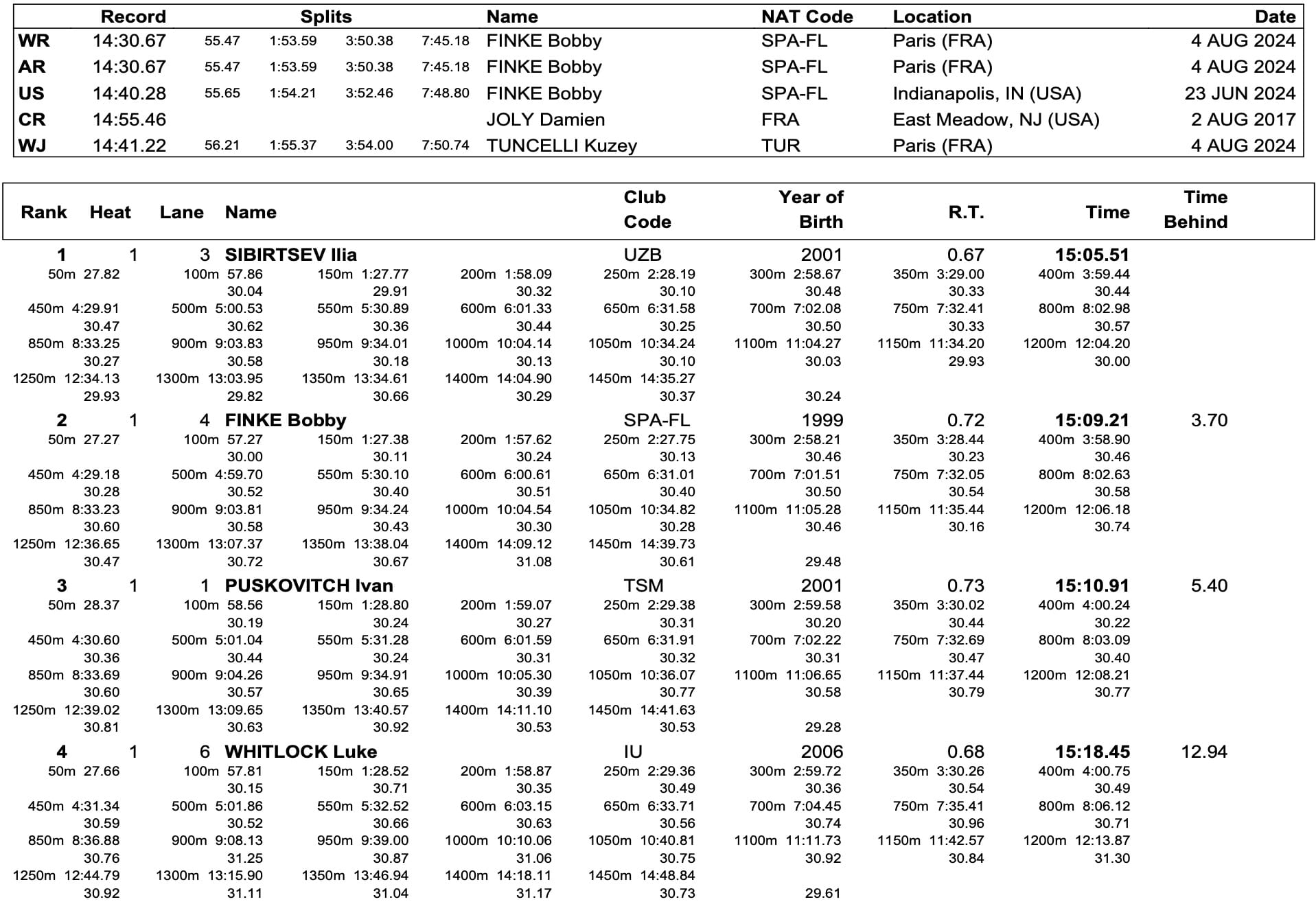 The distance crew, big names in the mix at a time of year when all are in heavy work for the seasons ahead - and therefore far from firing on all cylinders, got the U./S. Open started in Austin, Texas, today. The 1500m top finishers: