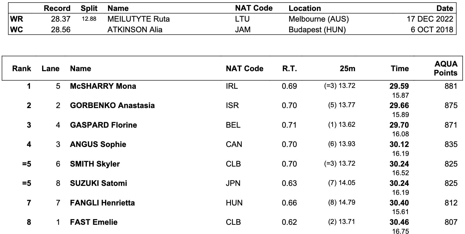 The Vortex - October 2025: Douglass Downs 2017 World & Cup Marks Of Campbell & Sjöström With 50.19 In 100 Free