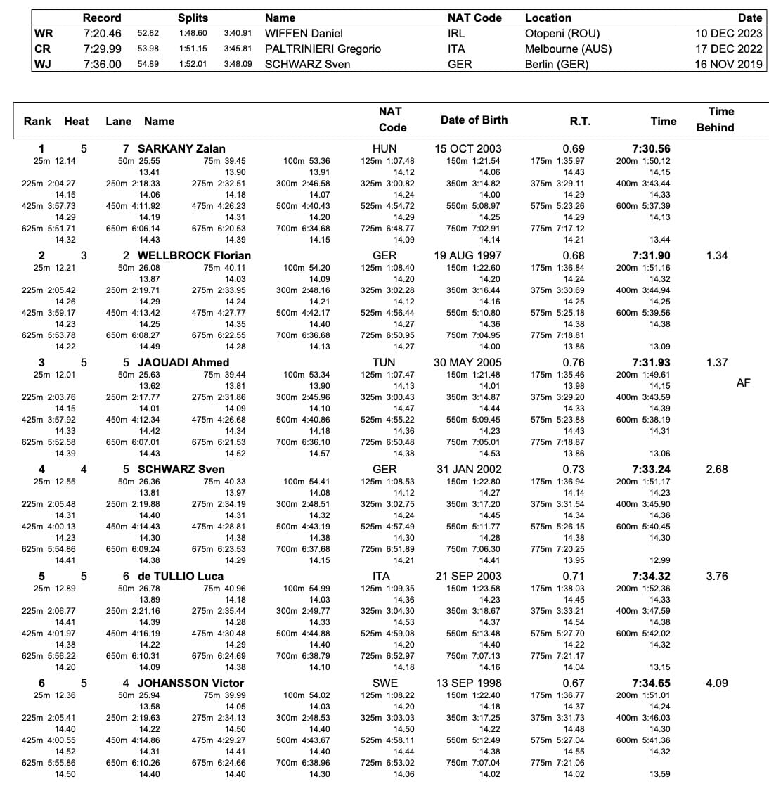 Men's 1500m free: