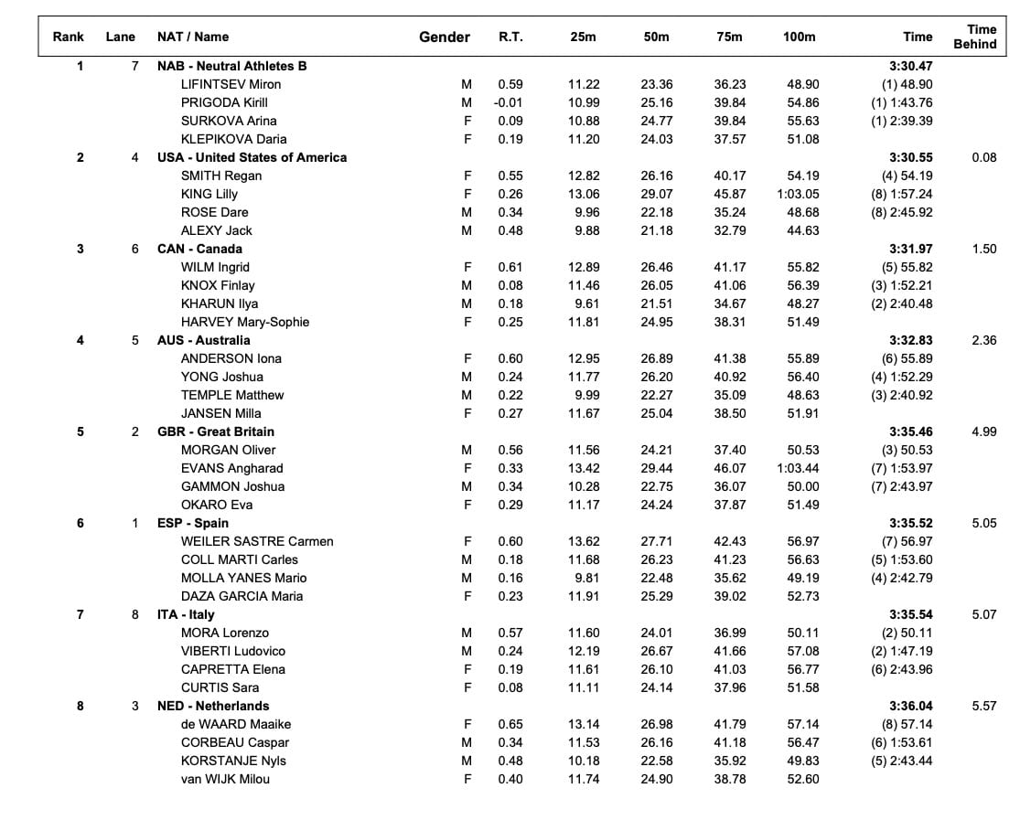 Mixed 4x100 Medley: